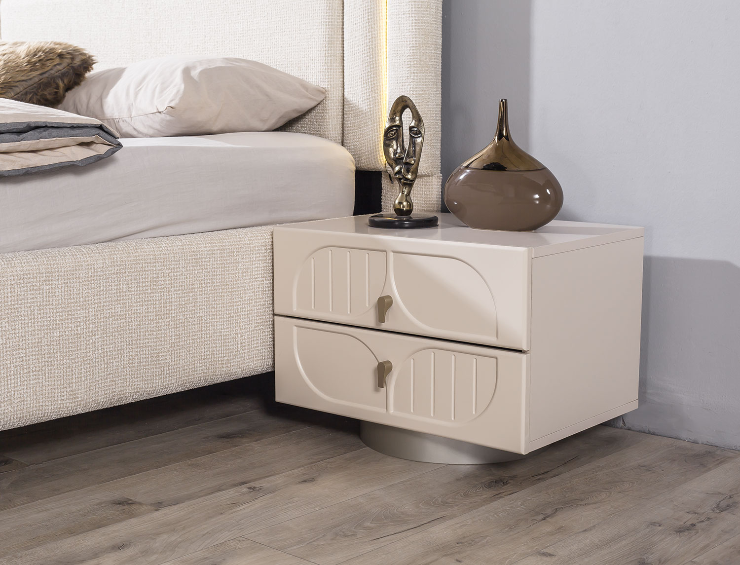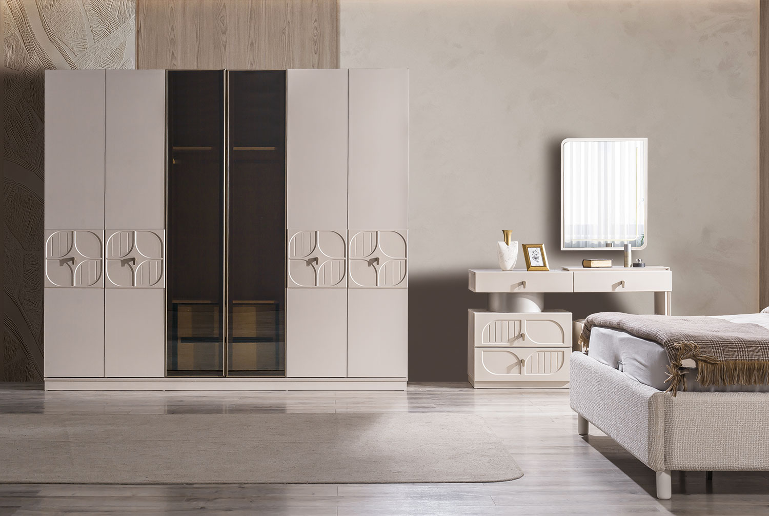 | TAKIM İÇERİĞİ | Bir gardırop, bir şifonyer v e puf, bir bazalı karyola, bir başlık ve iki komodin den oluşmaktadır |